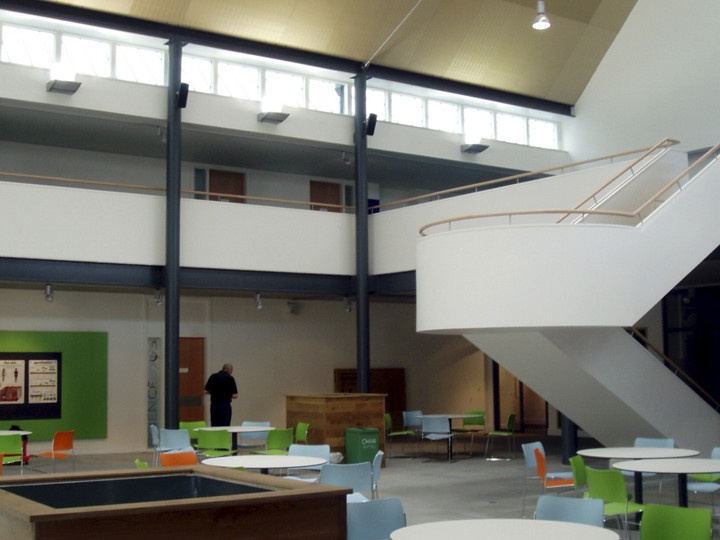 The block in question comprised approximately 48,400 ft² nett internal area, with biology, chemistry and physics laboratories and associated preparation rooms, language classrooms, toilets, general office space and a lecture theatre. The classrooms and laboratories were accessed via an impressive atrium.