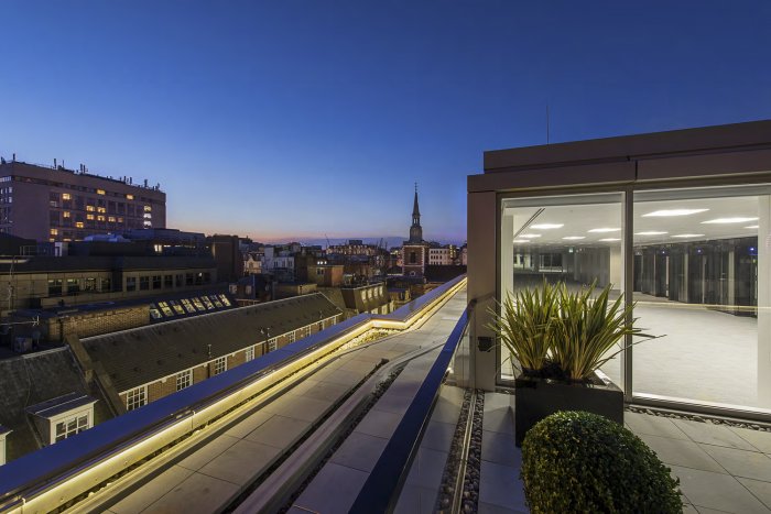 The central viewing space was directly opposite the main bank of lifts to provide the visitors with a dramatic entrance, and the terrace space provides further space for socialising and its dramatic London views.