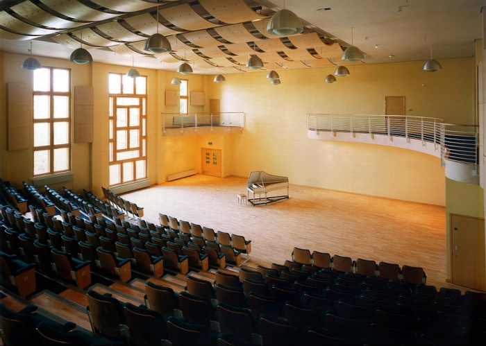 The music school features a 320-seat recital hall with practice rooms, classrooms, individual teaching rooms for specialist instruments, library and offices.