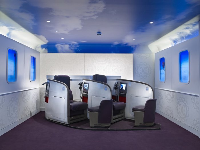 The lounge occupying 1,885 ft² was designed to offer customers and their guests a memorable experience in attractive and comfortable surroundings. New features included a ‘sky lounge’, complete with Virgin Atlantic first class seats and windows, where customers can recline and take advantage of the in-flight entertainment system.